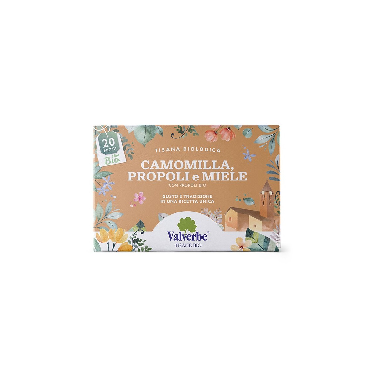 INGREDIENTI Camomilla (Matricaria Chamomilla L*.) fiori setacciati* 85%, Aroma naturale di miele* 10%, Stevia* (Stevia Rebaudiana Bertoni) foglie*, propoli* 1%. [*BIO] PROPRIETÀ Camomilla propoli e miele, unisce le proprietà del fiore di camomilla con vera propoli all' 1% e miele. Un gusto unico e intenso che ti regalerà intensi momenti di benessere. Camomilla propoli e miele è ideale alla sera o per alleviare piccoli dolori influenzali, tosse, raffreddore e mal di gola. Adatta sia per gli adulti che per i più piccoli. ISTRUZIONI PER L'USO Un filtro in una tazza di acqua bollente, lasciare in infusione per 5 minuti con coperchio per evitare la perdita dei principi volatili, assumere 2 volte al giorno, preferibilmente lontano dai pasti. E‘ preferibile non usare acqua clorata. Prima di togliere le bustine, premerle leggermente con il cucchiaino. Possibili lievi variazioni di gusto e colore fanno parte della naturalità del prodotto.